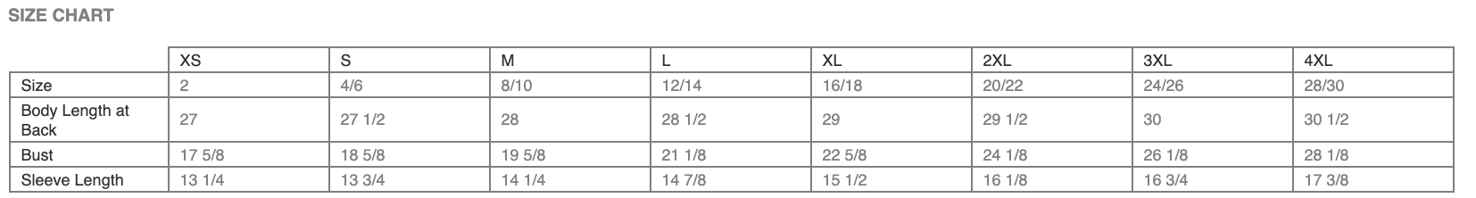 Apparel is made to customer specifications; please reference the sizing chart, as we can only accept returns on the embellished apparel if it is defective.